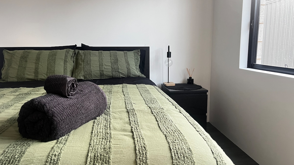 Modern 36m² self contained unit, private access, bathroom, laundry, kitchen, 1 car space, rustic elegance. Constructed with solid brick and concrete slab, and a Colorbond roof for enduring quality. Interiors boast artisanal exposed render walls, Jarrah beams and Walnut furnishings, Spanish porcelain tiles. Enjoy a plush queen bed, designer bathroom, 5KW Daikin air con and advanced security lock. Free NBN 5G WIFI & NETFLIX. By car, 4 mins to shopping, 12 mins to the beach, and 16 mins to City.