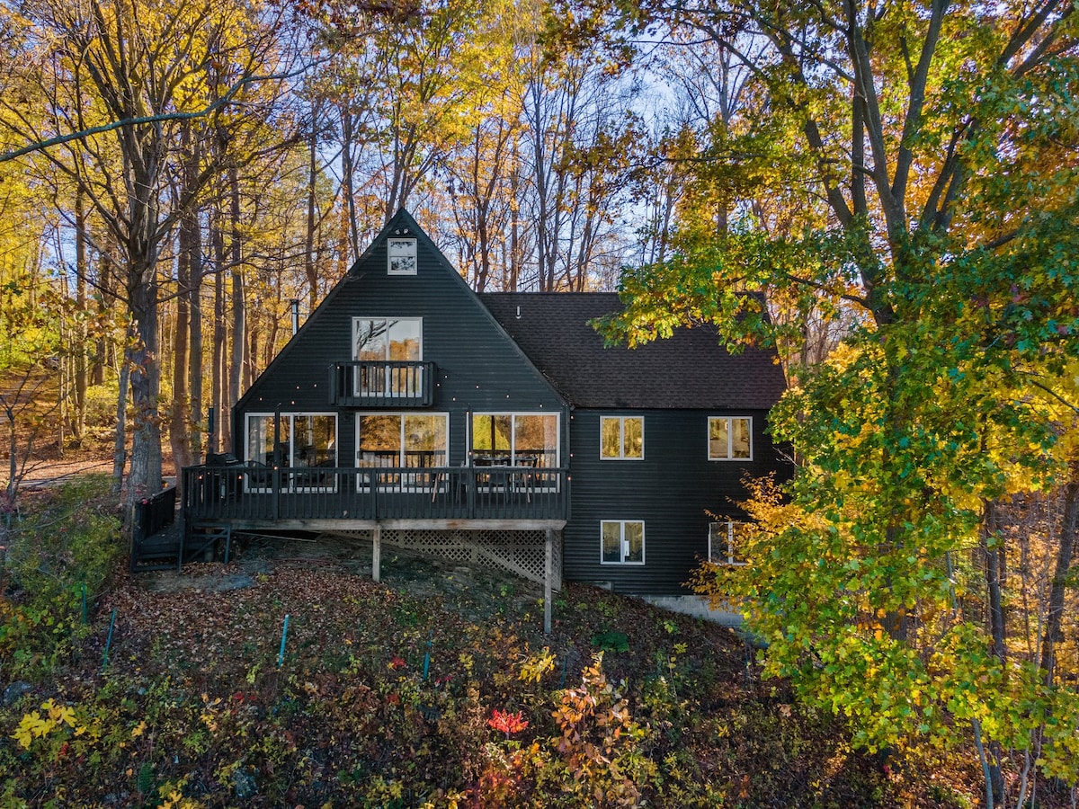 Experience the epitome of luxury in our breathtaking A-frame cabin, nestled amidst the serene woods. This modern retreat offers lavish amenities and a stunning open living space with floor-to-ceiling windows, immersing you in nature's beauty. Indulge in the private hot tub, relax by the fire pit, and unleash your culinary skills in our fully equipped kitchen. The large screened porch provides a tranquil oasis, while nearby hiking trails, golf courses, and a spa offer an unforgettable getaway!