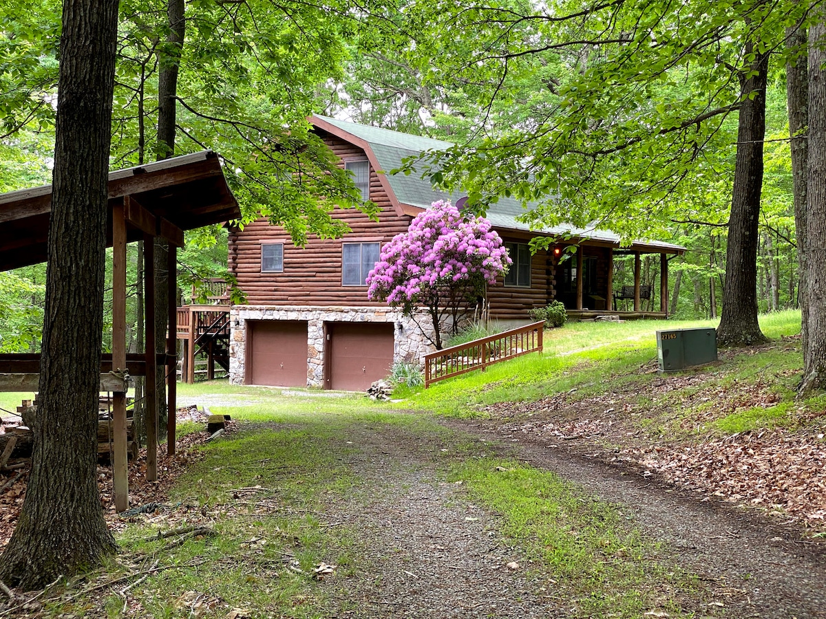 Get the most out of wild & wonderful West Virginia in this newly-renovated log cabin 20 minutes from downtown Berkeley Springs. Enjoy the wooded views from the expansive front porch, make s'mores around the stone fire pit, soak in the hot tub in the enclosed sun room, curl up with a book in front of the wood-fired stove, and get cozy in the movie theatre-like loft. You will have access to a private lake and incredible hiking trails minutes from the cabin.