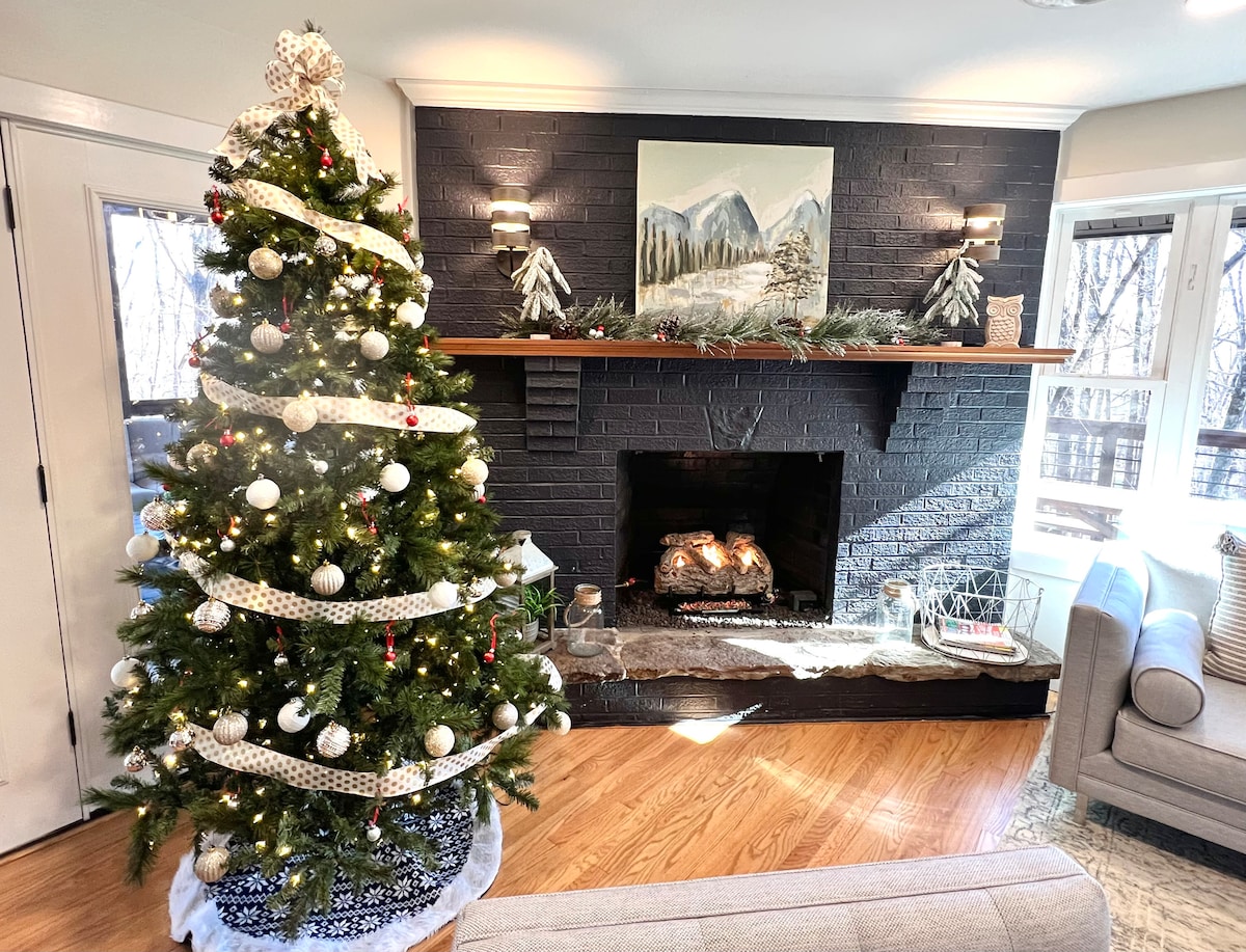 世纪中叶现代A型房屋,配备热水浴缸和火坑!
