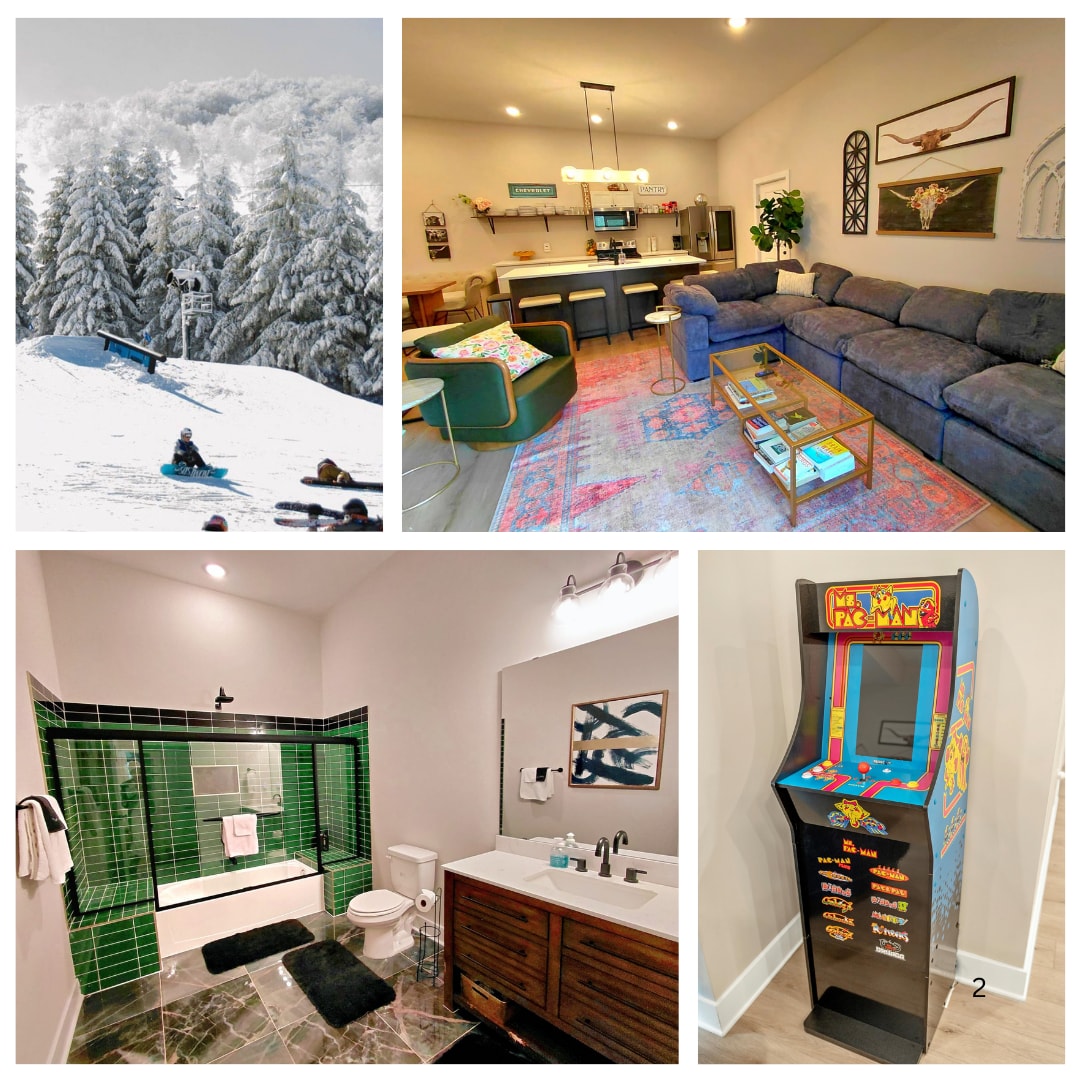Be amongst the trees! All Seasons Retreat is nestled near the top of the mountain in The Woods. Come enjoy the mountain views and relax on the 50-foot deck surrounded by trees. If you love nature and the outdoors, this is the place for you. Create s’more memories in the most incredible fire pit village! You also have full access to all the resort amenities.