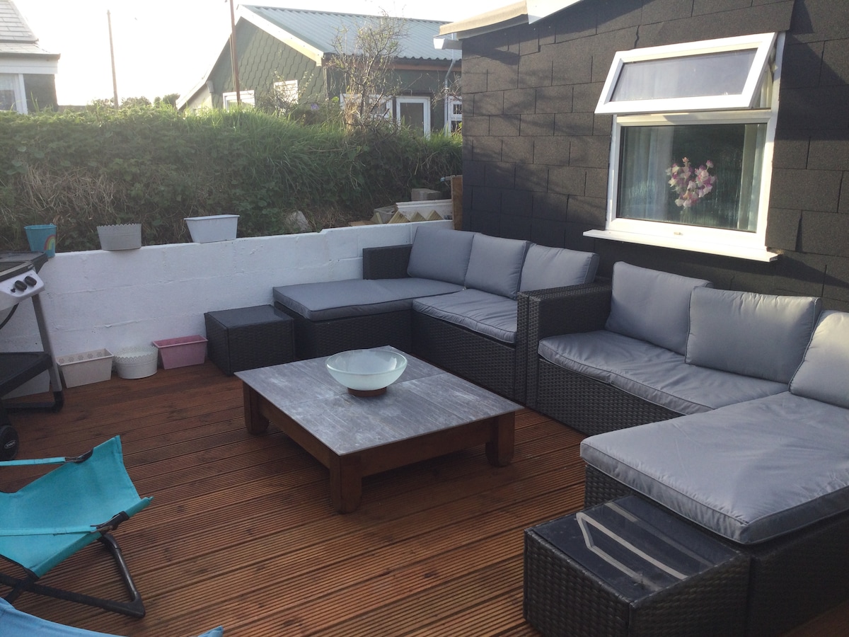 Why not kick back & relax in this calm stylish chalet? The owners, have tenderly re-created a heavenly chalet after the original chalet from the 1930's was knocked down in 2019 & rebuilt to this stunning standard by local craftsmen. The owners wanted a family space to share with guests, and have a mix of modern , retro & vintage with panoramic views over the ocean stretching as far as Rame Head ,Looe, Seaton & Downderry. Close to HMS Raleigh &Polhawn Fort. There are 120 steps down to the chalet.