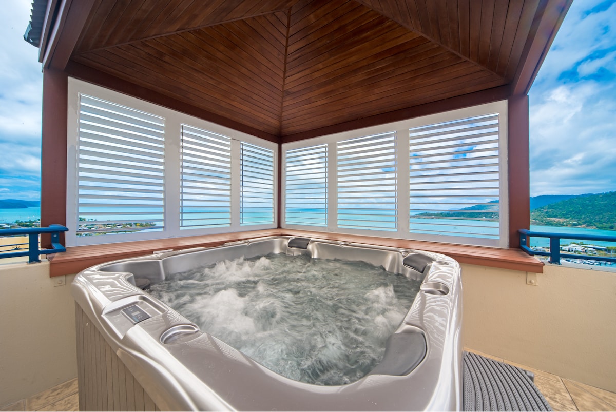 Waterfront private Resort Style Living all to yourself. Superb tropical Balinese Style Home, 3km from the heart of Airlie Beach. This secluded residence is situated in a quite residential area with stunning oceans views and adjoining parklands. Enjoy mesmerising sunsets from the seclusion of your private balcony, soak up the sun by the magnesium pool, or relax in the Infrared Sauna. All rooms connected by boardwalks giving you a true tropical experience. Sit back and enjoy the view :)