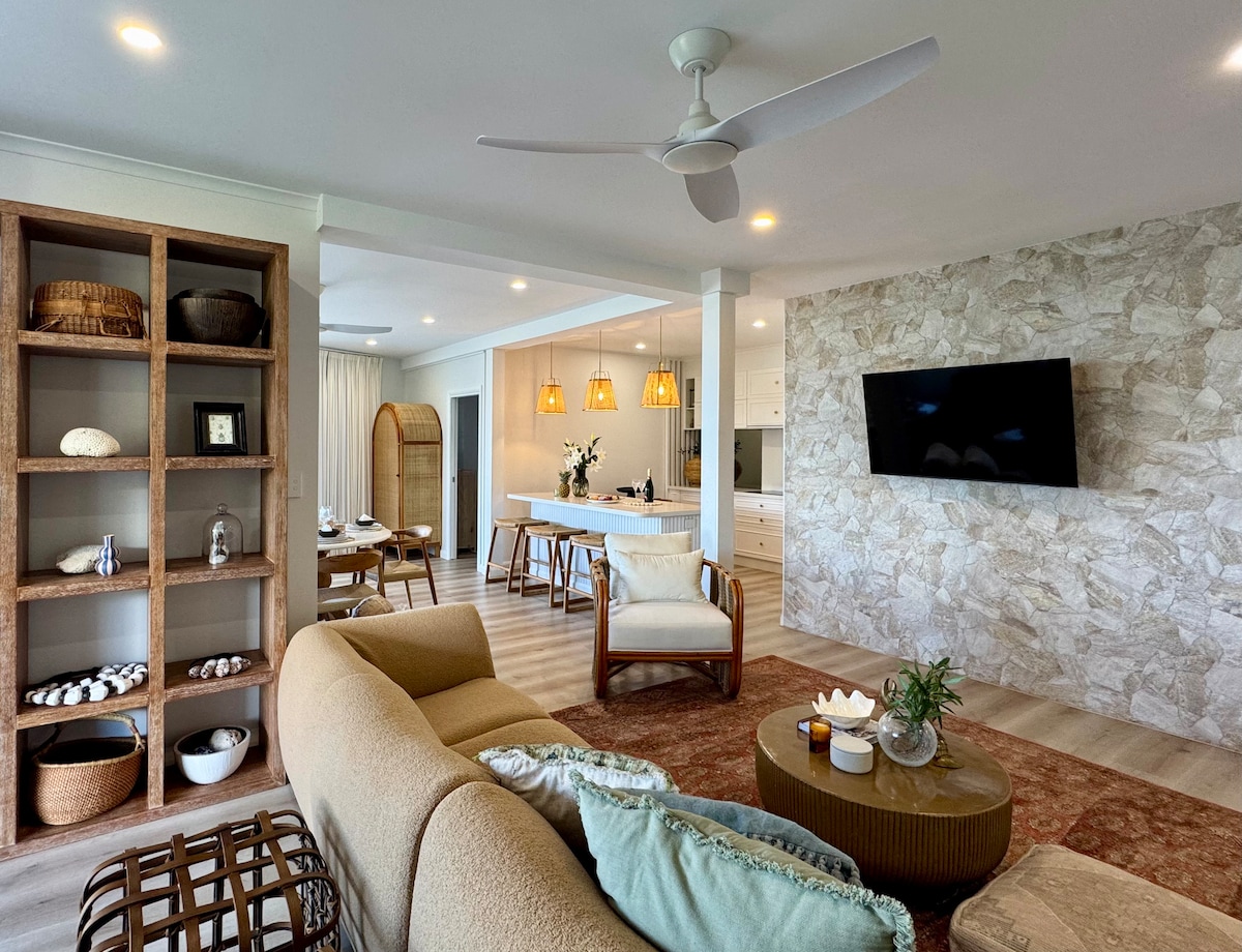 Unwind in this stylish, newly built granny flat, designed for peace and relaxation. Seperate from the main house, it features a private deck where you can sip a drink and pick fresh oranges while enjoying mountain views. Conveniently located within walking distance of shops and bus stop and just a 10-minute drive from Airlie Beach, it’s the perfect getaway for couples. A cot for infants is available on request.