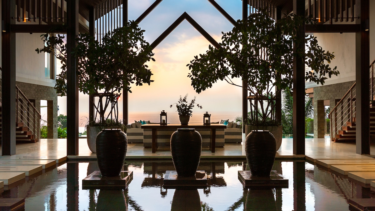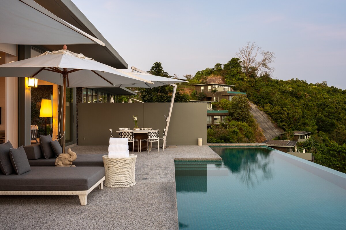 Designed by award-winning Architect Gary Fell with GFAB, this prestigious villa enjoys views of Surin Beach from one of Phuket’s most exclusive neighborhoods. Making the most of its perch, every bedroom has an ocean view. You’ll love the open-air layout, alfresco dining, and sunbathing on the pool deck. Inside, melt your cares away in the sauna, shoot some pool, or watch a movie in the theatre.