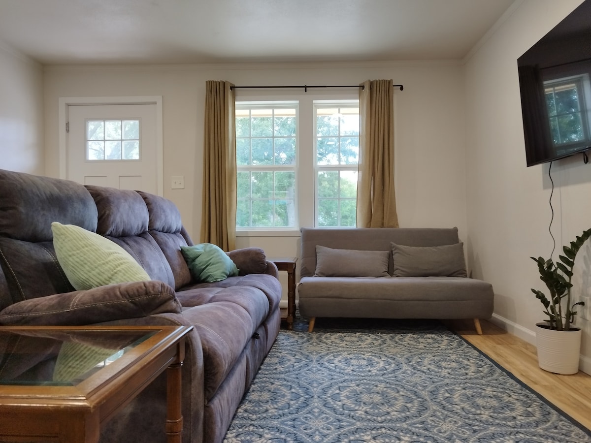 🌟 Unlock the door to your cozy haven! This charming Superhost-managed 2-bedroom home is a Guest Favorite and offers the added convenience of 1.5 bathrooms—a huge perk for groups and families. Enjoy the peace of a small-town community, sip coffee on the porch, or fire up the grill in the spacious backyard. Your peaceful retreat awaits! 🏡✨