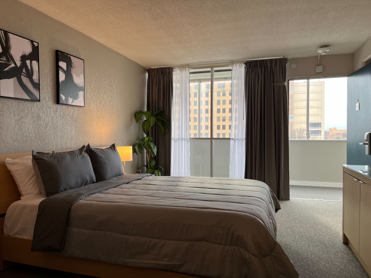 Welcome to our stylish studio retreat, your perfect home away from home for mid-term stays. Experience modern comfort in a recently updated space designed with your needs in mind. Ideal for Mid-Term Stays: Whether you're here for business, academics, or a long getaway, our studio offers the perfect balance of comfort and convenience. This studio boasts a thoughtful layout, featuring a comfortable queen-sized bed, a fully equipped kitchen, on-site laundry facility and more.