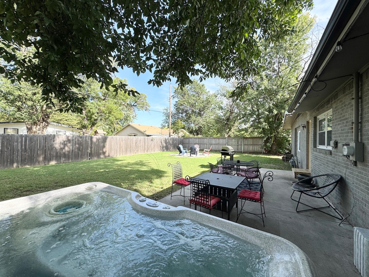 Welcome to your getaway in Wichita! Enjoy a relaxing and fun stay in our spacious home, perfectly located in the Indian Hills neighborhood. Whether you're here with family, friends, or for business, this is your ideal escape. With room for up to 10 guests, our home offers 3 comfortable bedroom and 2 king beds. For entertainment, enjoy a 70-inch cinema, pool table, Nintendo Wii, and arcade games. Come relax in the hot tub and unwind!