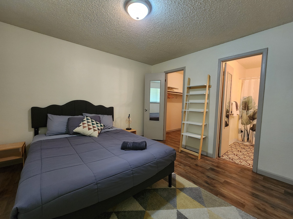 This unique place is Wichita’s microMansion, the Smittle Model. Custom, newly built 600-square foot “tiny home”. Though we are a tiny home, we don’t feel small. Two bedrooms with a queen in the primary and a daybed that pulls out to king size in the secondary room. The kitchen includes full-size appliances. The house is conveniently located two blocks from the historic Delano District, five blocks from the new Riverfront Stadium, Wichita Ice Center, and close to Century II. You’ll love this sp