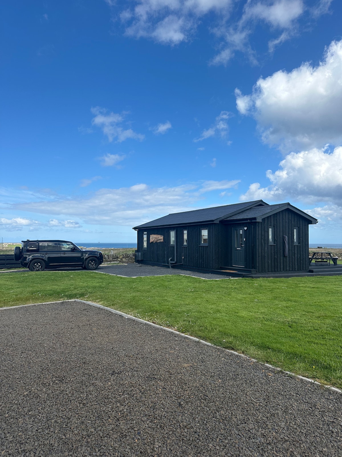 A truly unique get away set on over 14 acres of its own land, over looking the Orkney Islands, 3 mins off the official NC500 Route. With features like its own 6 person hot top, 2 bathrooms, modern kitchen and spacious dining area, and 3 double bedrooms plus a extra guest room with a pull out sofa bed. Relax with the whole family at this peaceful place. Only 15 mins from John o'grotes and Dunnet beach Also the chance to witness the spectacular Northern lights (Aurora) on the right occasion.