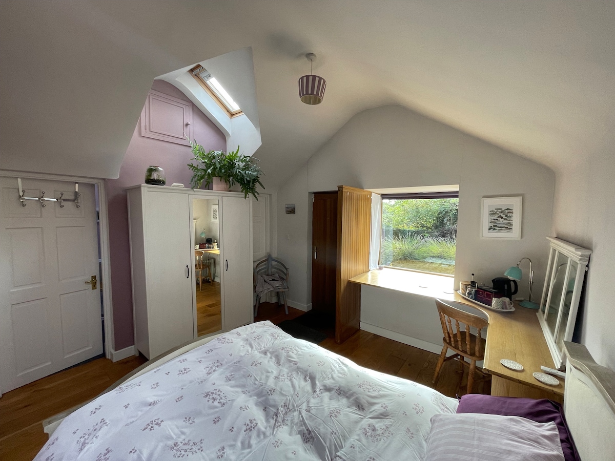 This is a 'bijou' , calm studio /duplex on a sunny day it is lightfilled. It's attached to my four bedroomed house. The town of wicklow is a 10 minute walk also beach,harbour, cliffs to the main bus to Dublin Bray Glendalough . it is a 22 minute walk to the train station. It is a residential neighbourhood ,a secluded corner house in a quiet cul de sac with parking. As I am a yogi it was designed with zen , calm ,relaxing atmosphere in mind. and is beside my home Yoga Studio.