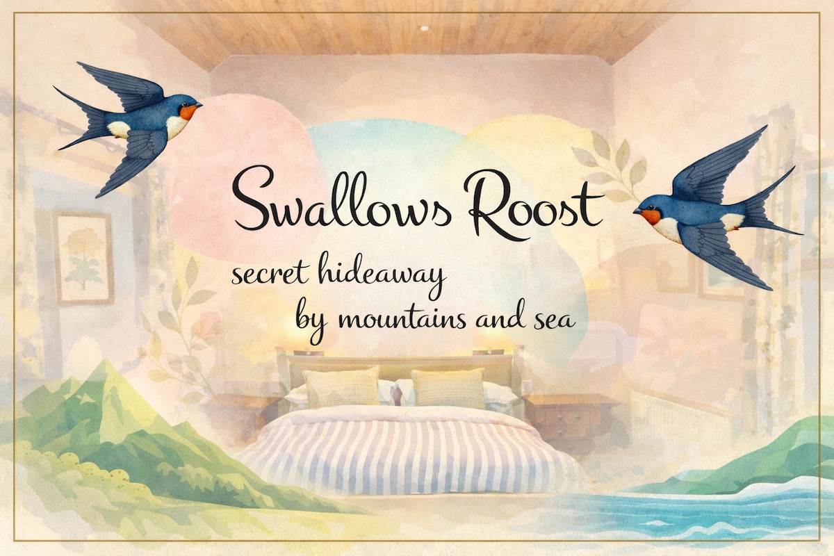 Swallows Roost is a cosy garden hideaway in the foothills of the Wicklow Mountains, just 8 minutes from Brittas Bay. Once a stone cow shed, it’s now a snug, self-contained retreat with a double bed, kitchenette, bath/shower, Wi-Fi, and TV. Guests enjoy a garden and, by prior arrangement, a hot tub under the stars. Set in a peaceful rural setting shared with friendly dogs (if you like), it’s ideal for couples, walkers, or beach-goers, with Prosecco on arrival and thoughtful touches throughout.
