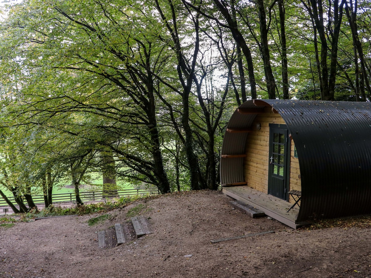 Unwind, relax and return to nature when you stay in the rewilded woodland of our farm. Sleep with the trees and stars at your fingertips and birdsong feeding your soul . Relax and mend in your own personal hot tub. Amble through the growing woodland and return to the cosy comfort of your hut.