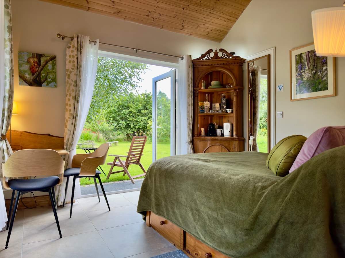 The guest suite is both light in the day and cosy at night. Attached to the main house but with own entrance. Rural mountainous area. Within 20mins you will be in Glendalough with incredible walks like The Spinc. Russborough House and Parklands is 15 mins drive away. Delicious food can be found all with in 15 mins, The Hollywood Inn, The Ballymore Inn and The Poulaphouca House and Falls. Hollywood has a gorgeous cafe and flower shop offering beautiful gifts.
