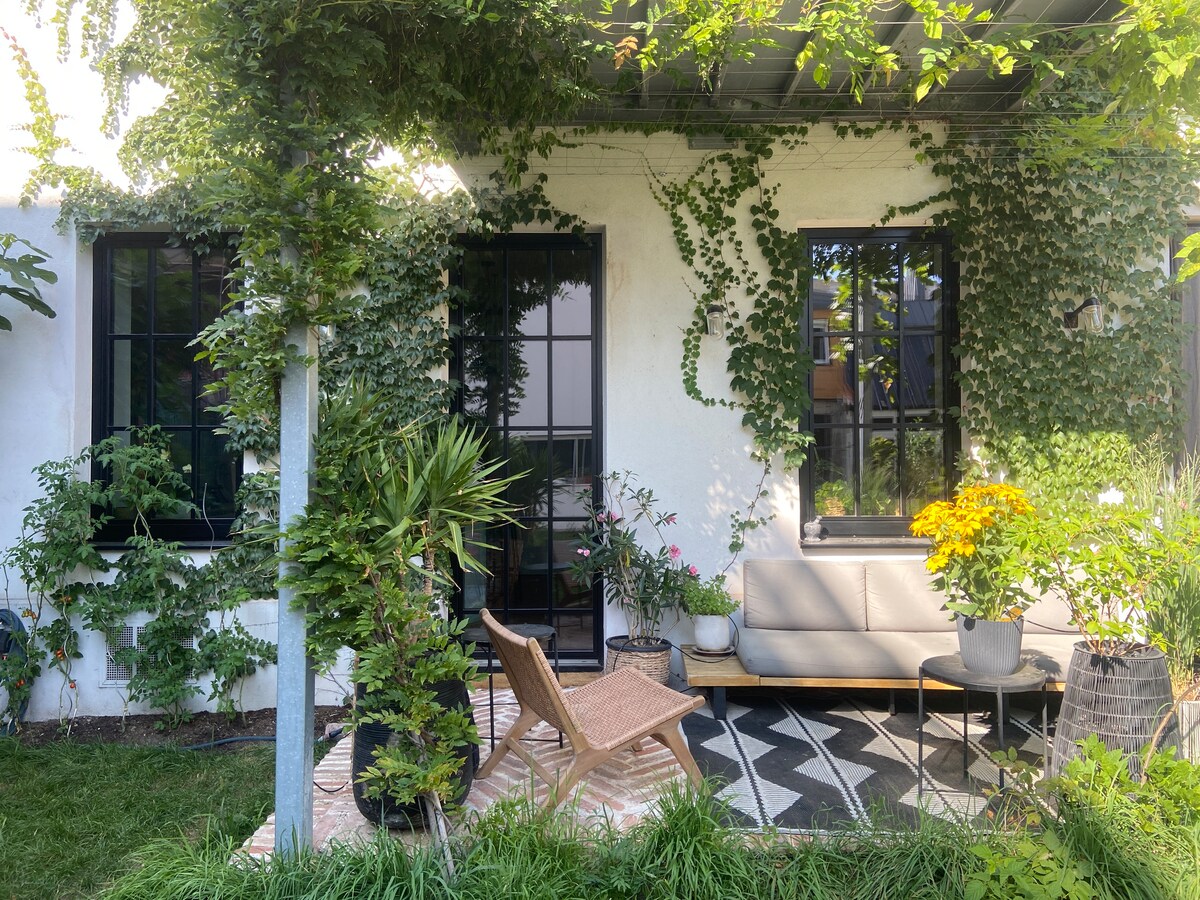 Generous space/kitchen, dining and living room in one. New wooden parquet floor. Two separate bedrooms with double beds - comfy and cozy.- you have to go through the first one - for connected people. Washing machine and dishwasher - all kitchen utensils to cook and a nespresso machine and french press. Calm inside and outside. With one step you are in the garden and you can sit on a nice ensemble. Walking distance to tram/bus, shops, parks, swimmingpool. 15 min. to the city. No cats please.