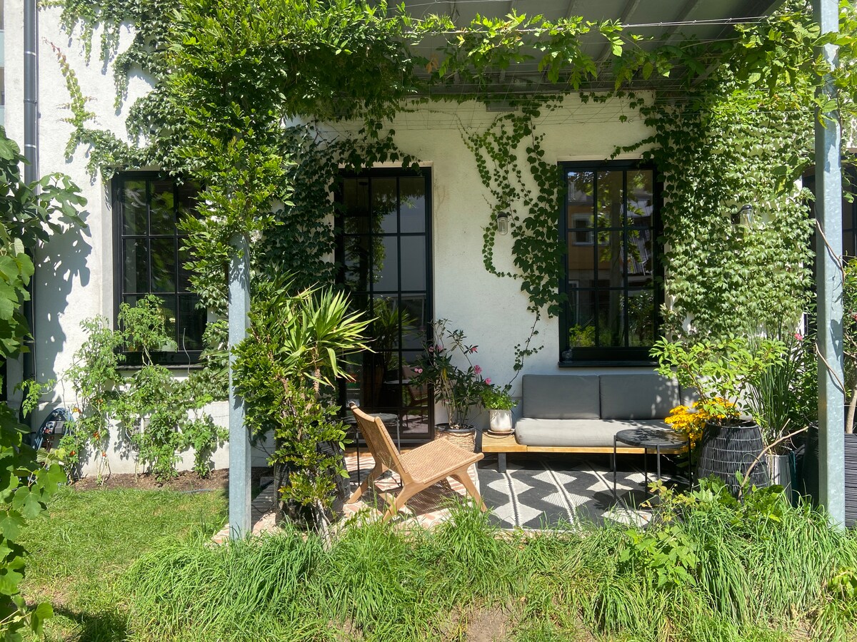 Generous space/kitchen, dining and living room in one. New wooden parquet floor. Two separate bedrooms with double beds - comfy and cozy.- you have to go through the first one - for connected people. Washing machine and dishwasher - all kitchen utensils to cook and a nespresso machine and french press. Calm inside and outside. With one step you are in the garden and you can sit on a nice ensemble. Walking distance to tram/bus, shops, parks, swimmingpool. 15 min. to the city. No cats please.