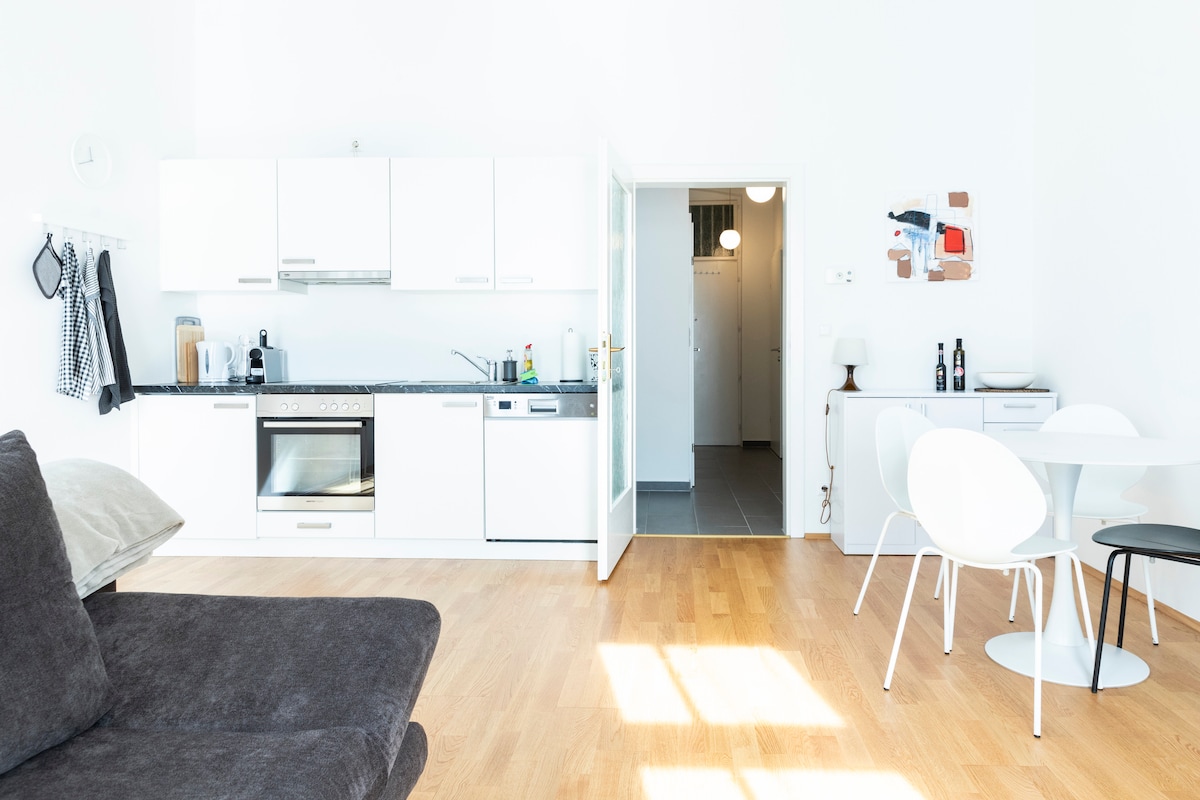 Newly renovated stylish appartement located in French District of Vienna, very central, 2 mins walk away from public transport & 7 mins ride to the city center. The 2 room flat is cosy & peaceful, suitable for tourists or business travellers. It has a separate bedroom with double bed, large built-in closet & living room with a comfy sofa bed. Kitchen is well equipped with Siemens machines including kettle, Nespresso & other machines. The luxurious bathroom is very spacious with a designer bath.