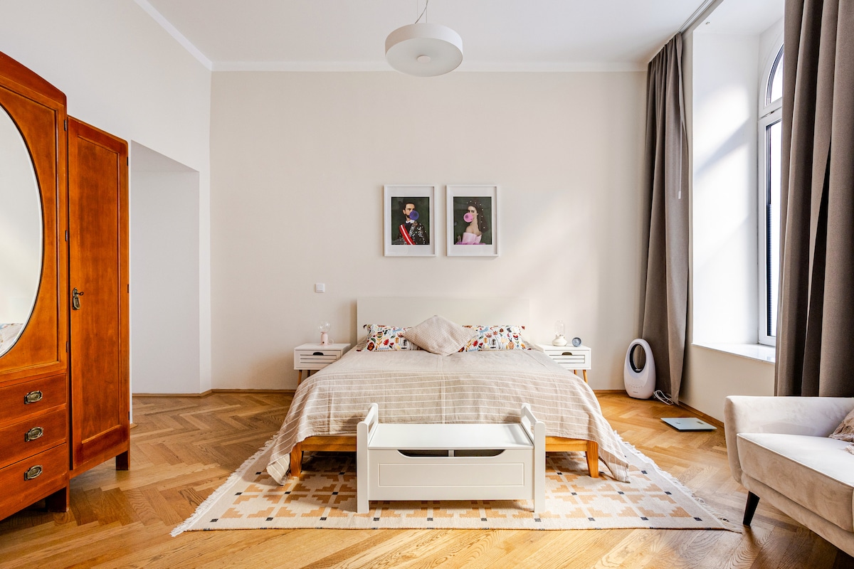 这套市中心公寓位于市中心,与古董相遇