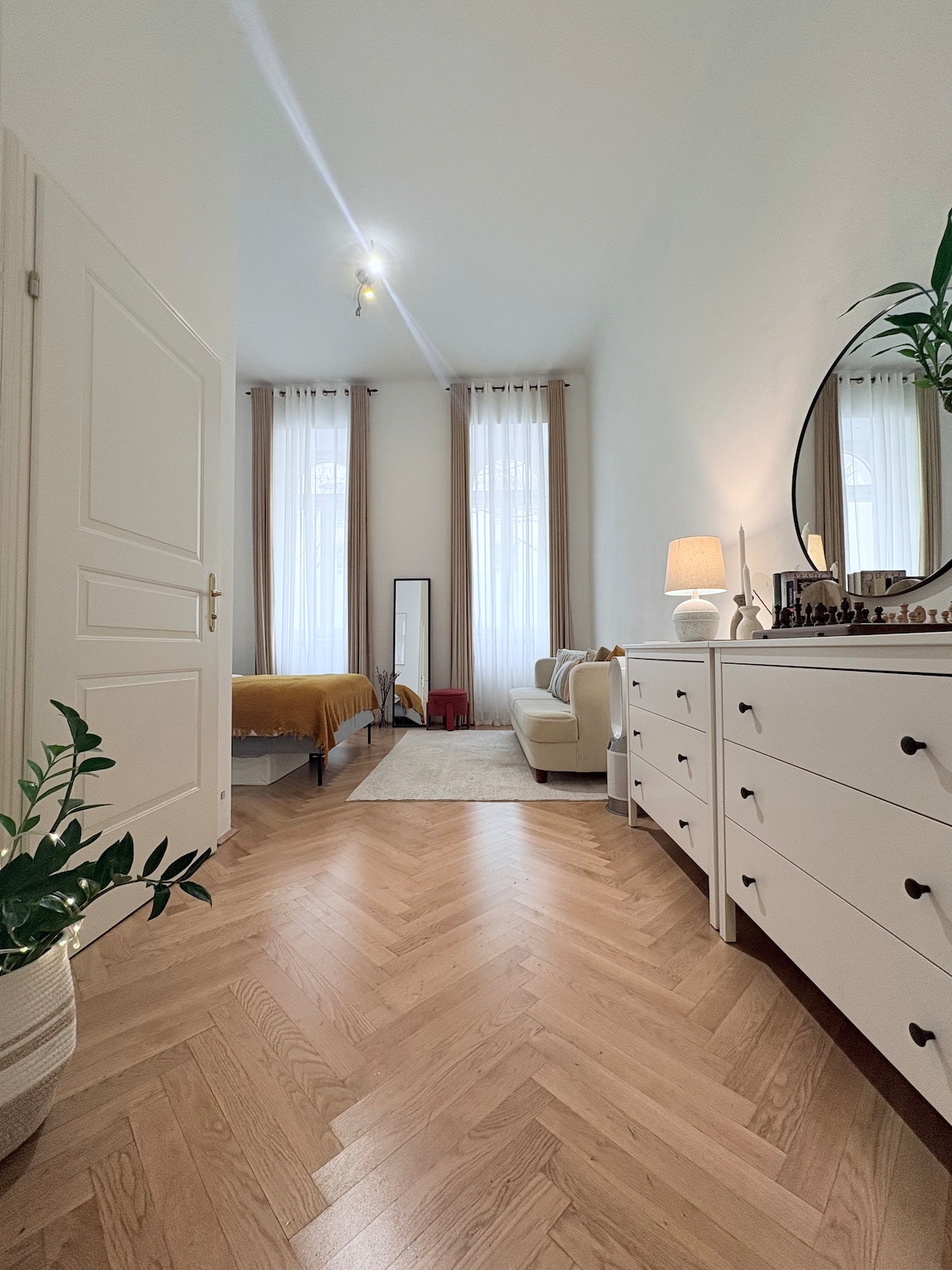 Stay in your own authentic and grand Viennese apartment in the historic Otto Wagner Wundsam Palace right between parliament and townhall. 206 m² for up to 10 guests. Enjoy the two independently workable wings connected by a private entrance hall. Ideal for families, friends or colleagues traveling together. Original etched glass, generous rooms, easy self check-in and breakfast delivery complete the experience. Hotel-grade linens, plush bathrobes, and a fresh breakfast bag to your door.
