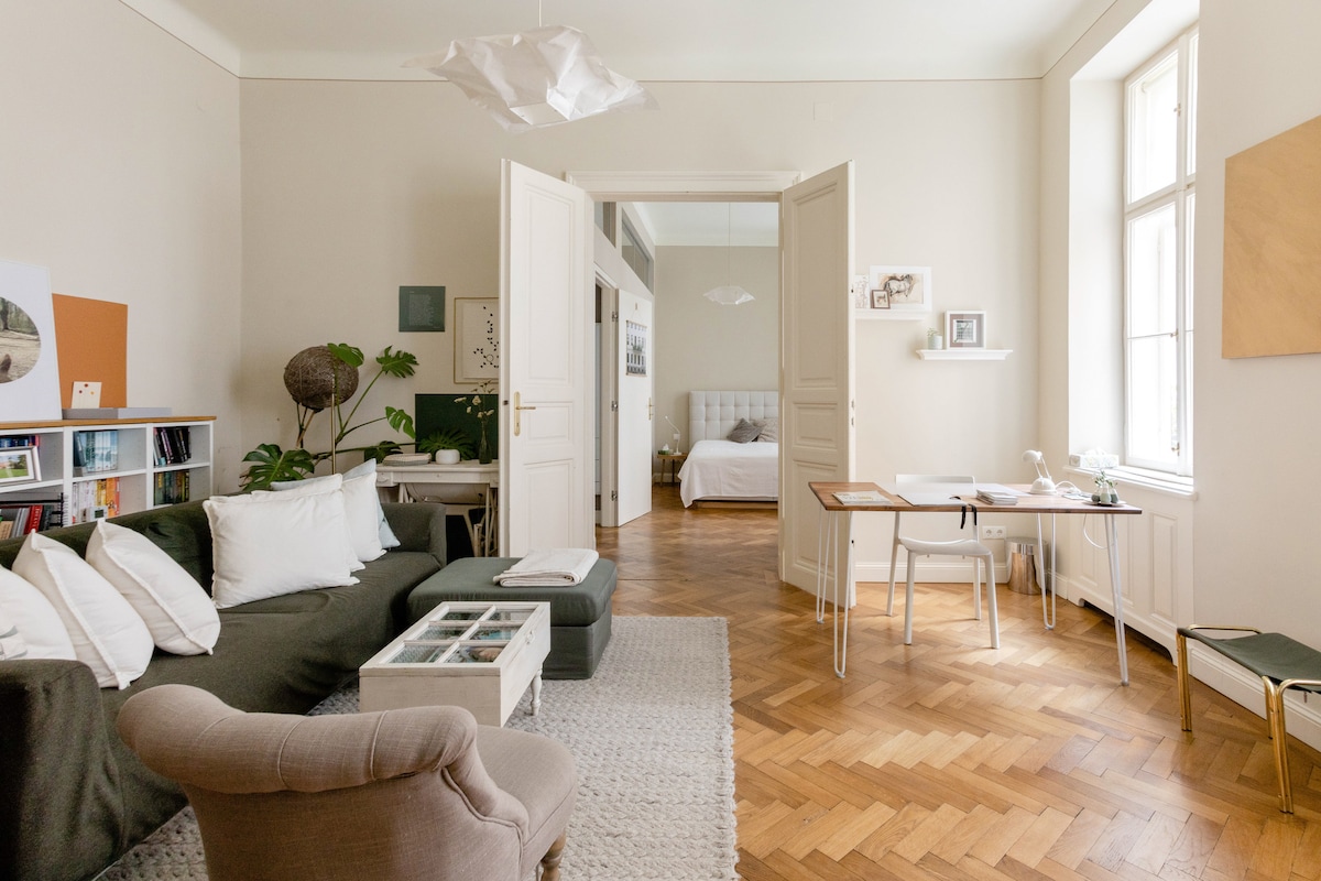 English: City life but make it comfy? Welcome to the Nest, where Vienna feels like a village while vibrant city life is only 10 minutes away! The spacious flat offers every amenity your heart desires- fast internet, a large comfy bed, AC, a cozy couch for long movie nights and a well equipped kitchen for cooking experiments - you basically don't need to leave the house in all pandemic fashion style.
