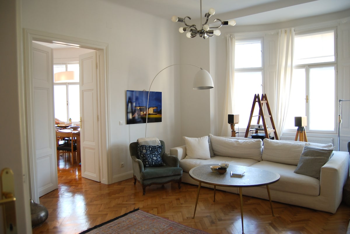 This cozy, high-end vintage apartment in the heart of Vienna is perfect for romantic weekends or longer stays – ideal for one or two guests. Enjoy 89m² of elegant living on the 7th floor, with elevator access and sweeping city views. Stroll to Vienna’s main sights or catch the U2 at Schottentor, just steps from your door. Unwind on the sofa, take in the charm, and enjoy everything you need right at your fingertips.