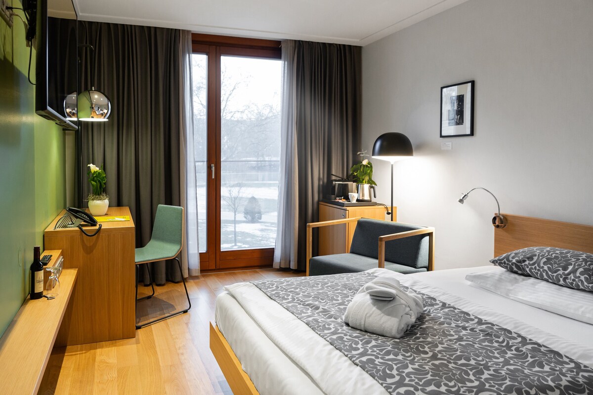 Unsere 71 renovierten Hotelzimmer und 3 Suiten bieten moderne Ausstattung. Bleiben Sie über das kostenfreie WLAN unseres Hotels mit Arbeit, Familie und Freunden in Verbindung. Genießen Sie das stilvolle Design und die wohnlichen Annehmlichkeiten, wie etwa eine voll ausgestattete Minibar. Mit saftigen Grüntönen und erdigen Farben wird der Charme der Umgebung eingefangen und in den gestalterischen Elementen zitiert. Die mit Holzrahmen umrandeten Betten laden zum Entspannen ein.