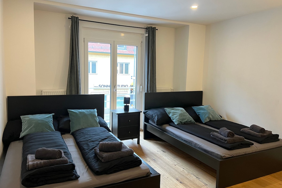 Im Herzen von Wiener Neustadt befindet sich die großzügige Suite, die keine Wünsche offen lässt. 2 getrennte Schlafzimmer sowie ein XXL Sofa bieten ausreichend Platz für 5 Personen. In der gut und hochwertig ausgestatteten Küche lassen sich kleine Speisen zubereiten. Diniert wird im geschmackvoll eingerichteten Esszimmer. Eine Nespressomaschine sorgt für einen tollen Start in den Tag. Im sehr große Badezimmer finden Sie neben einer Dusche auch eine Infrarotkabine mit Saunafunktion