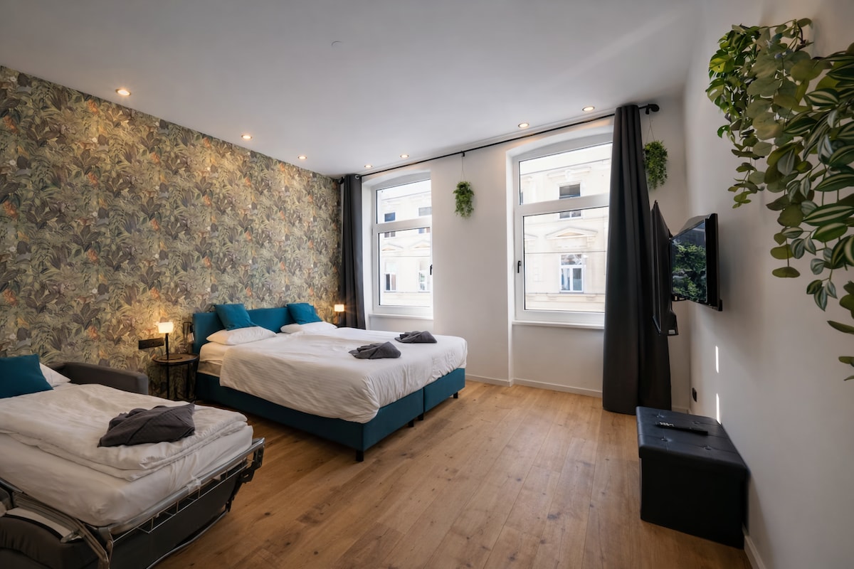 English: City life but make it comfy? Welcome to the Nest, where Vienna feels like a village while vibrant city life is only 10 minutes away! The spacious flat offers every amenity your heart desires- fast internet, a large comfy bed, AC, a cozy couch for long movie nights and a well equipped kitchen for cooking experiments - you basically don't need to leave the house in all pandemic fashion style.