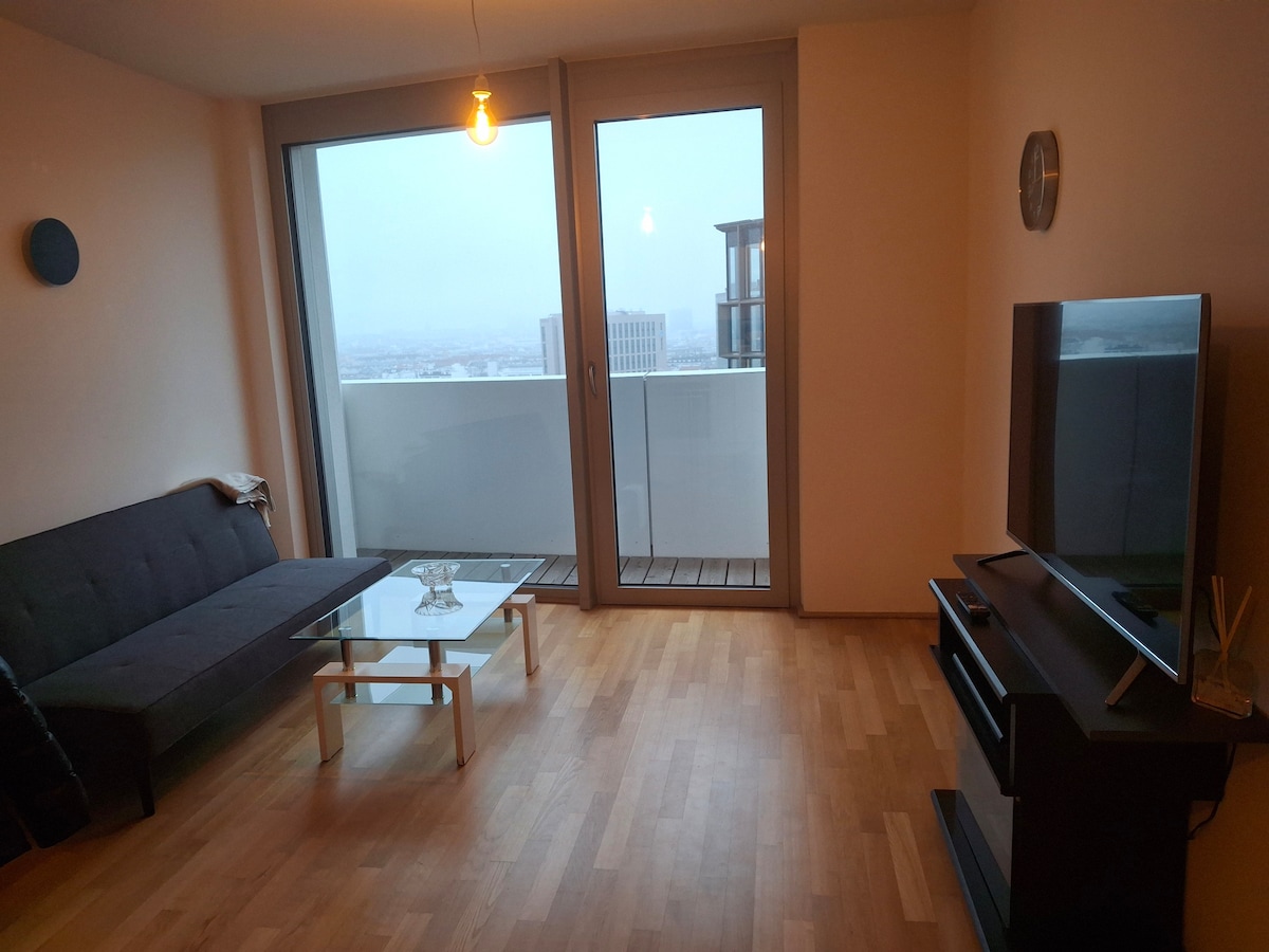Experience Vienna from above: sweeping skyline views from the 36th floor, high above the city. Tired after a long day exploring the city? Access to Sauna and Gym in the building across the street is included. The subway is right at your doorstep, taking you to the city centre in 15 minutes without transferring and the grocery store is in the ground floor of the building, which makes grocery shopping very convenient. Furthermore the famous "Das Gym" is 5 mins away by foot.