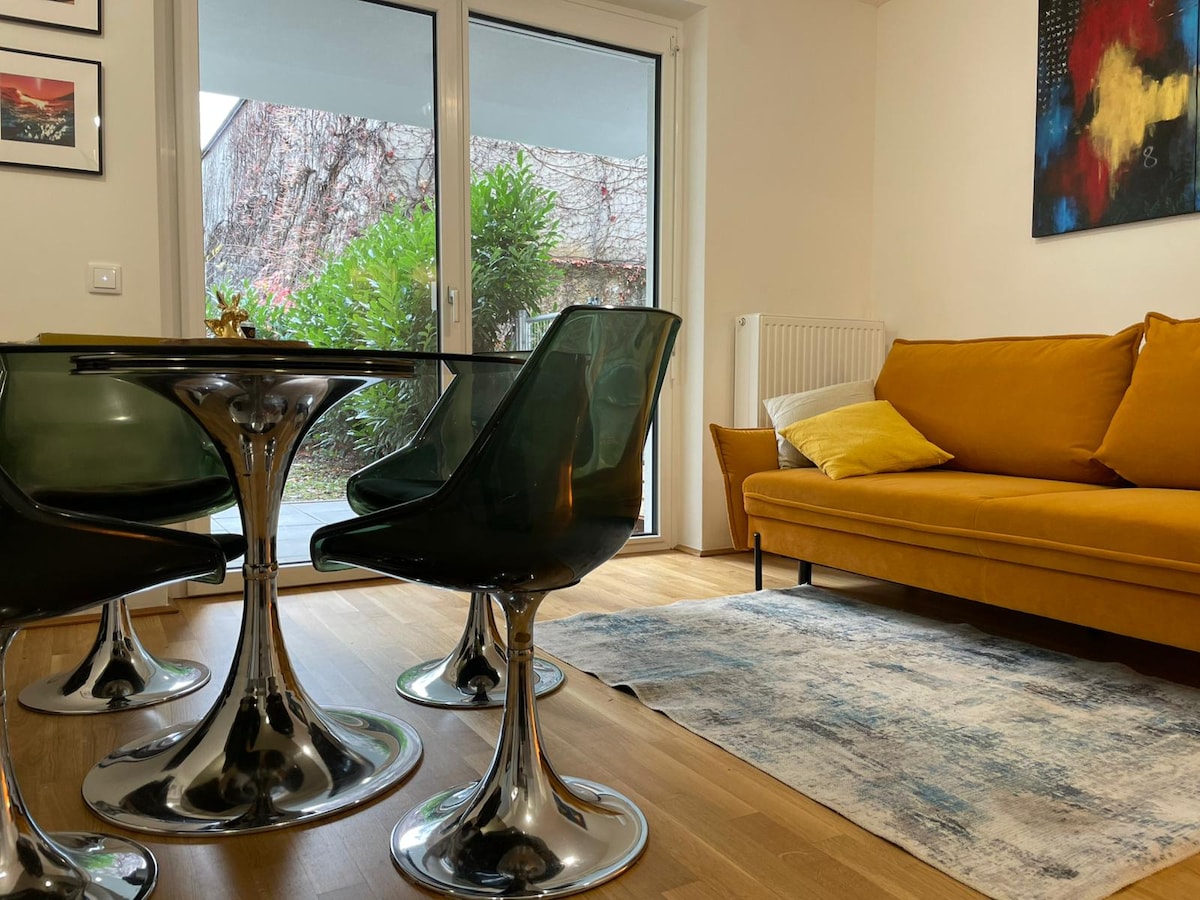URBAN UNIT has 50m2, fits up to 4 guests & is located in the 16th district of Vienna. A one minute walk brings you to the tram station, which connects you directly to the historical city center by only 8 stops (no changing trains). The apartment is right next to a park so there's hardly any traffic. The whole building is brand-new (construction work finalized in January 2022). It has a private 19m2 terrace with comfy lounge furniture, accessible from the bed- & living room.