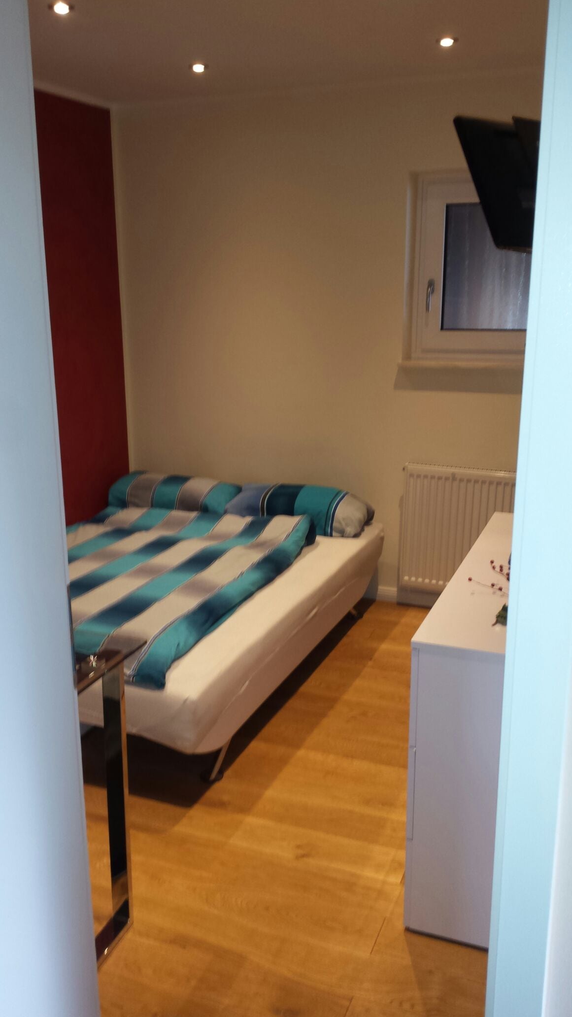 The room is a small retreat that offers peace and comfort. The room is equipped with a TV for Amazon Prime, a closet, a small desk with a chair and a comfortable single bed that can be pulled out if necessary. The room has its own entrance. The location is quiet and away from the noise and hustle and bustle, which contributes to a relaxed atmosphere. The room has a private bathroom with a shower. There is a fridge with drinks & snacks for €