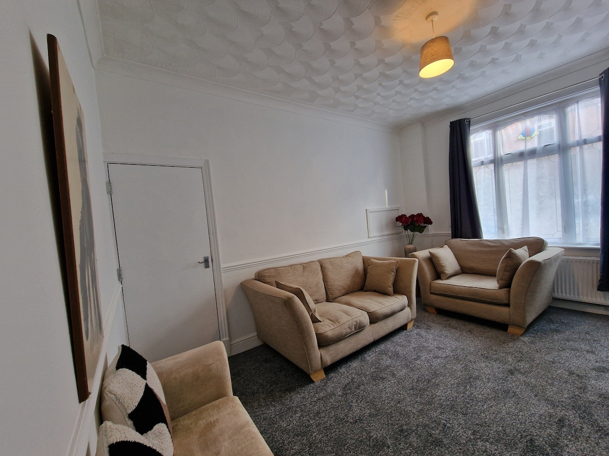 Strictly no parties or gatherings. Over 25s only. ID required. Min 2 Positive reviews. CCTV cameras. 4 bed home in leafy Knighton, Leicester, is available for guests looking for a convenient stay. Just a short bus ride away, you can easily reach O2 Academy Leicester, De Montfort Hall, and the Curve Theatre for concerts and shows. The King Richard III Visitor Centre, National Space Centre, and Leicester Universities are nearby, making it ideal for visitors to the city or attending events.