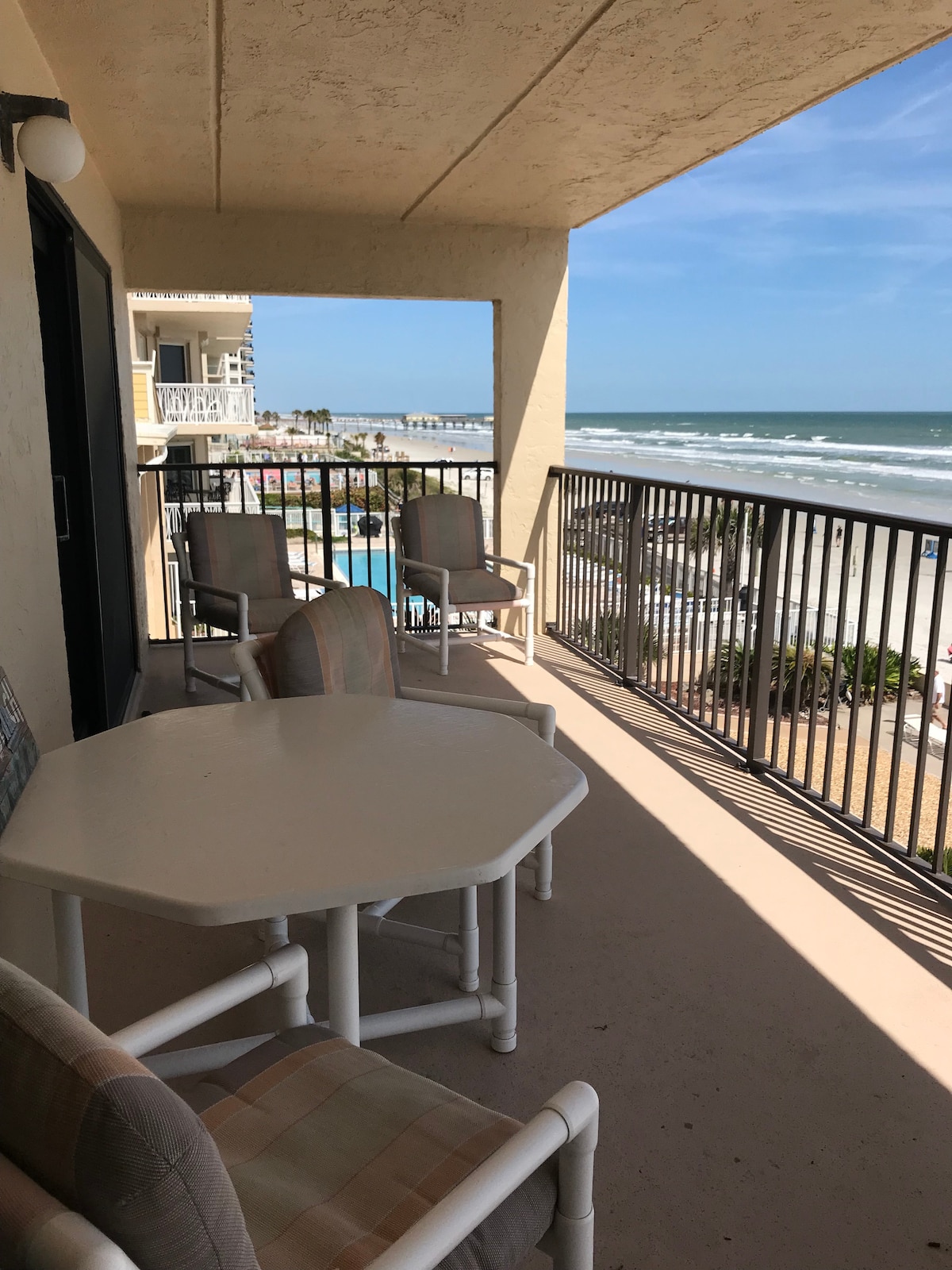 Bookings for oct and nov does not have balcony access, due to concrete repairs. rates are 60%off due to these repairs. mon to fri Netflix Included, Come Experience our amazing beachfront views in our beautiful newly remodeled studio in daytona beach located directly on the beach, it is like being on a cruise ship over the ocean. and a King Size Bed and full sleeper sofa we are walking distance to Great Restaraunts, all linens, towels, beach towels and coffee, creamer,and sugar