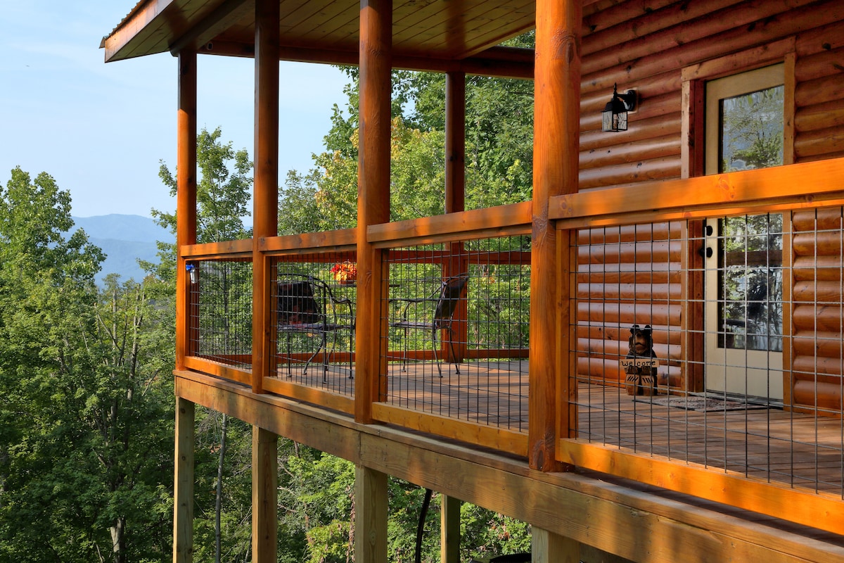 This charming log cabin offers breathtaking mountain views and unique features, including a staircase supported by a tree and poplar bark accent walls in the living room and master bedroom. The cabin has log bedroom furniture, live edge tables, and a whiskey barrel table on the deck. We hope you'll enjoy the hot tub and an electric fireplace too! The location is ideal, just 10 minutes from downtown Gatlinburg and 15 minutes from the National Park. If you're lucky, you may just see a bear!
