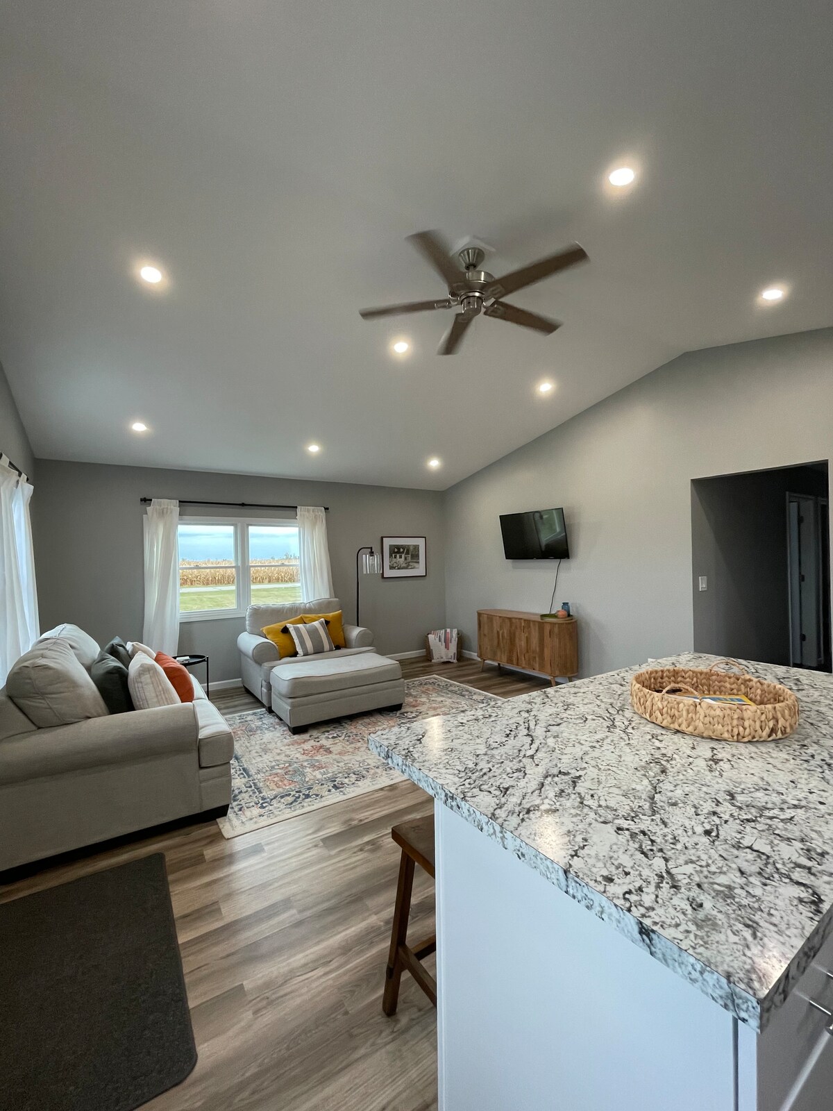 Bring the whole family to this great place with lots of room for fun. Or grab your buddies for a relaxing stay after a long day of hunting or fishing. Conveniently located next to a quarry. And if you’re lucky, you will get to experience the boom of the dynamite. Notice that there is one tenant upstairs. Only registered guests are permitted on the property. Additional guests must be approved in advance and are subject to an extra fee. No parties or events are allowed at any time.
