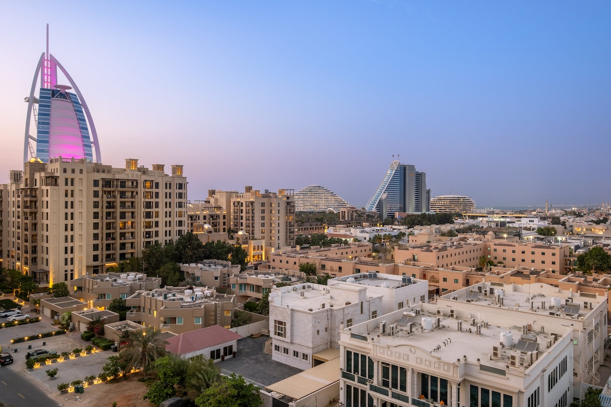 Experience Dubai at its finest in this beautifully styled apartment located steps away from Burj Al Arab and Souk Madinat Jumeirah. This space is ideal for couples, small families, or business travelers. Enjoy fast Wi-Fi, a dedicated work desk, and free private parking. All in one of the most prestigious neighborhoods in the city.