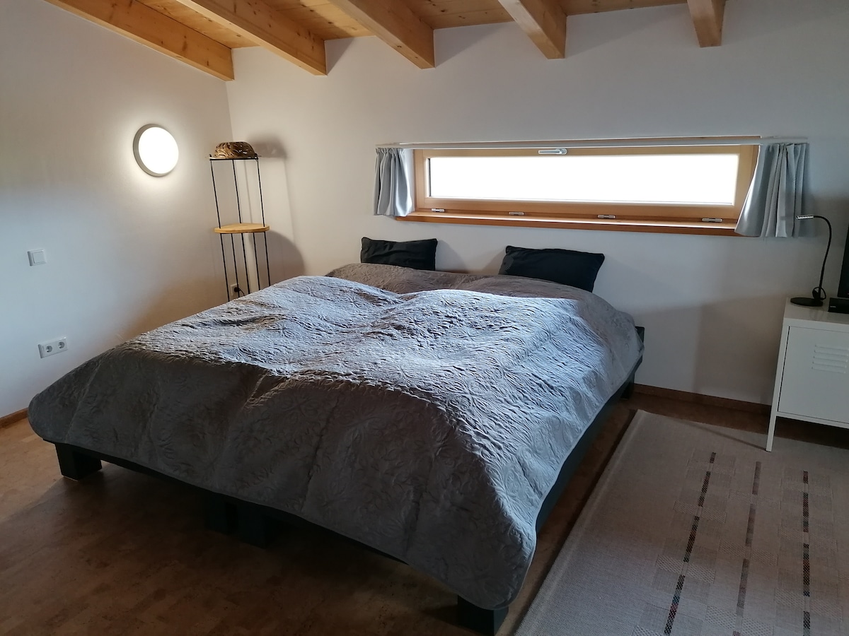 Helles Apartment (Neubau 2021) mit Balkon im 2. Stock für Paare, Familien und Geschäftsreisende (ein großer Schreibtisch steht zur Verfügung), mit separatem Eingang. - 5 Autominuten zur Therme Erding (größte Therme Europas) - 10 Autominuten in die Erdinger Innenstadt - 20 Autominuten zum Flughafen München - 33 km in die Münchner Innenstadt - 30 km zur Messe München Supermarkt, Bäcker, Metzger, Bank sowie ein bayerisches Gasthaus sind in Fußnähe