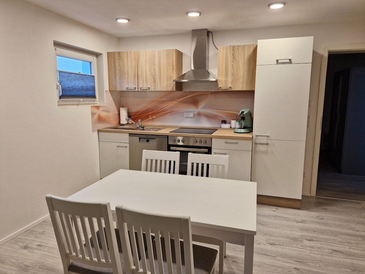 Einliegerwohnung mit eigenem Eingang. Flur mit gemütlichen Holzofen, Wohnküche, Schlafzimmer, eigenes Bad & Terrasse mit Sonnenschutz. Wohn/Schlafzimmer: 3x Boxspring Betten (kann auch einzeln gestellt werden) Sat TV, Alexa, freeWIFI, Schrank, ZH, Rolladen. Bettwäsche inkl. Küche: Ceran, Backofen, Kühlschrank Spülmaschine, Geschirr, Tischgruppe, Kaffee/Tee for free. Bad: Dusche neu saniert, WC, Waschtisch - Handtücher werden gestellt und sind im Preis inkl. Fitness Raum / auf eigene Gefahr