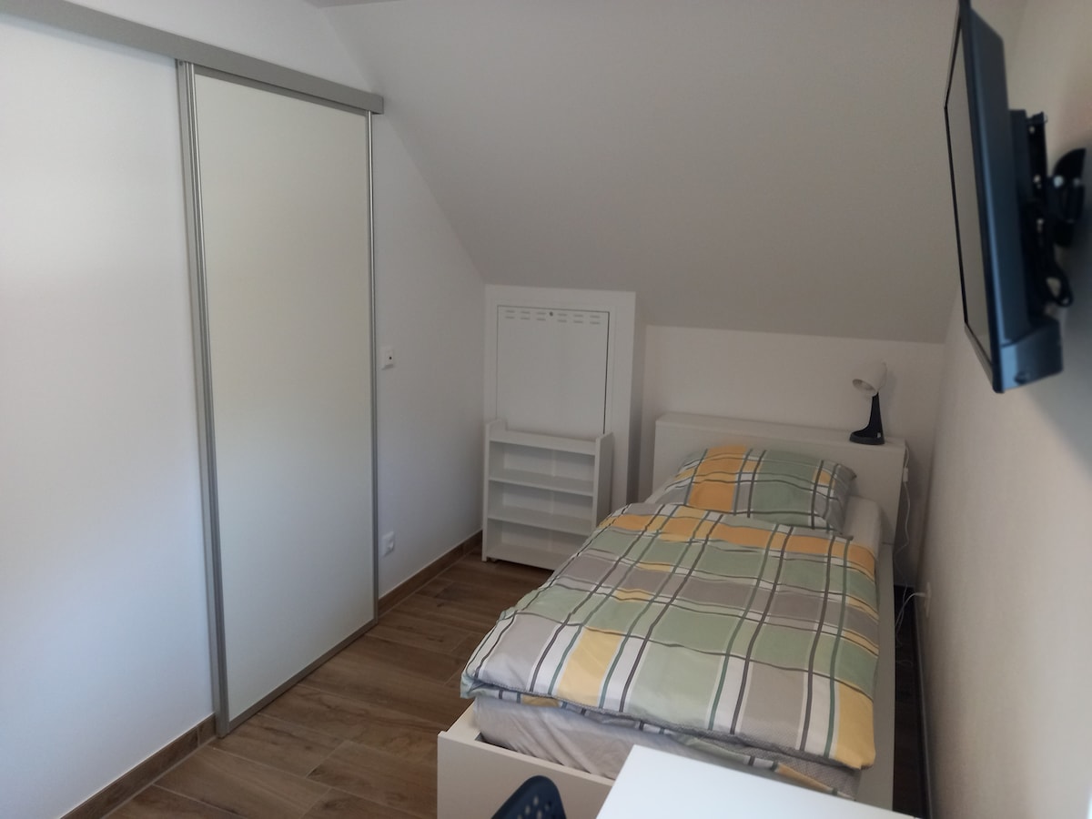 Our little house in the countryside was completely renovated in 2024 and lovingly furnished. It is located in a quiet allotment site on the edge of the forest and offers a unique view of the Further Valley. The accommodation is just a few minutes' drive from the beautiful town of Landshut. Perfect for couples, families and business travellers. *Internet: WLAN *Kitchen: cooker, fridge, freezer, dishwasher, microwave *Bathroom: shower, daylight *Private terrace with seating *Smart TV