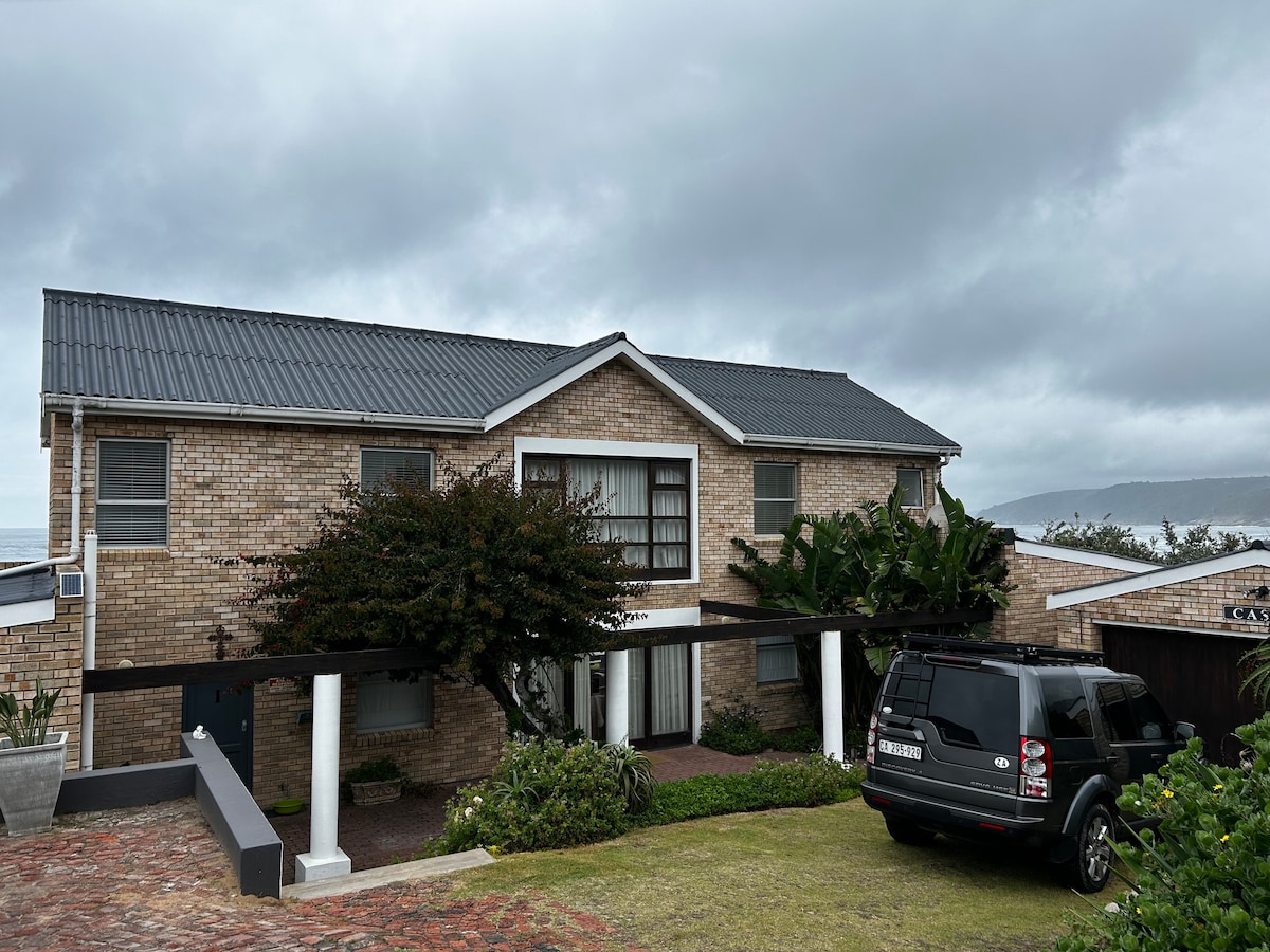 Seaside cottage is situated on Wilderness main beach. The cottage has no sea views from the bedrooms but only from the balcony upstairs. Beautiful sea views from the comman area on the grass. Walking distance to the Wilderness village. Ideal getaway for all couples and families. ( not ideal for small children, stairs in cottage and open balcony) No safety gate at stairs. The property is fully walled and has secure parking on the premises for one vehicle.