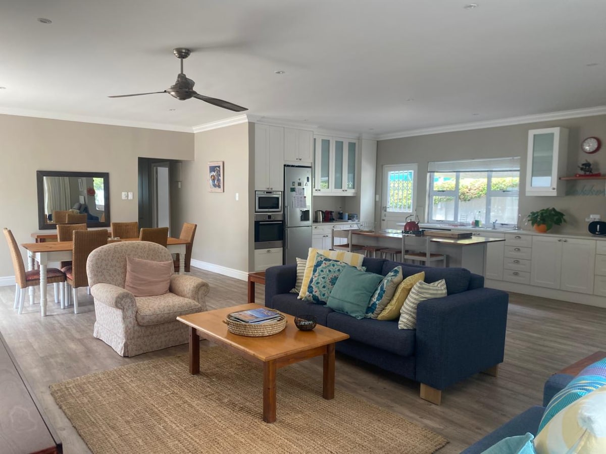 Overlooking the ocean and the lagoon, nestled in a bird conservancy against a forested hill and 5 minute drive from pristine beaches and the center of Wilderness, this stylish self-catering house offers spacious living and dining spaces, a deck with a heated pool, 3 bedrooms with en-suite bathrooms and private terraces with views on the sea and the forest. Amenities include a home gym, Pilates equipment, Weber braai, smart TV 75”, full DSTV, Play Station 4, fussball table, and uncapped Wi-Fi.