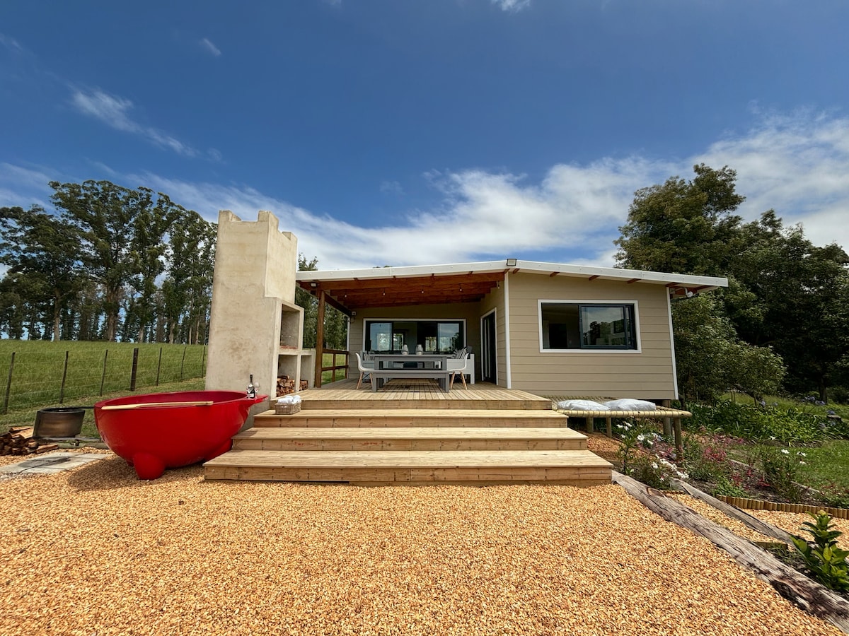 Nestled on a beautiful buffalo breeding farm located 10 km from George Airport. Accommodation is offered in a Eco-Friendly POD nestled on the banks of a farm dam. The bedroom contains a king bed which can be converted to 2 single beds, while the en-suite bathrooms are fitted with a bath and outdoor shower. Each unit has a well-equipped kitchen and an open-plan living area with a fireplace. The units open onto a private patio with a built-in braai area and a wood-fired hot tub