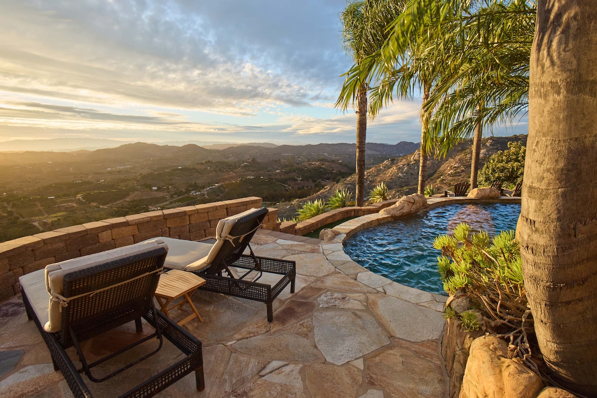 Enjoy views to the ocean, atop a secluded mountain retreat with 52 acres of private hiking trails. Look out on the private waterfall lagoon pool and sip coffee among acres of fruit and palm trees. Or enjoy the attached, indoor bouldering/yoga room before you start your day. In the evenings enjoy amazing sunsets while relaxing by the gas fire pit. The views are amazing and endless. Follow us on social media for photos/updates-search mountain rim retreat.