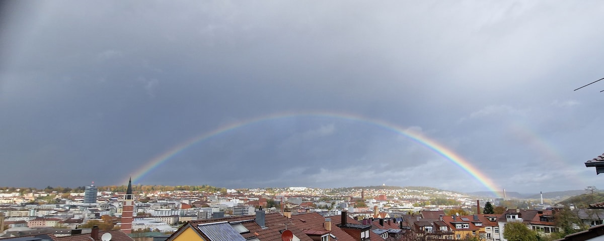 Herzlich willkommen in unserer mitten in Pforzheim gelegenen Dachgeschoss-Wohnung. Trotz der zentralen Lage, ist es ruhig und sehr angenehm zum Wohnen. Ideal auch in der Lage zur Hochschule für Gestaltung und DESIGN, diese ist in 13min zu Fuß zu erreichen. Zur Hochschule Wirtschaft BUSINESS School, sind es 36min zu Fuß oder 17min mit dem Bus Linie 5. Helios Klinikum: 18min zu Fuß, 15min mit dem Bus, 5min mit dem Auto.