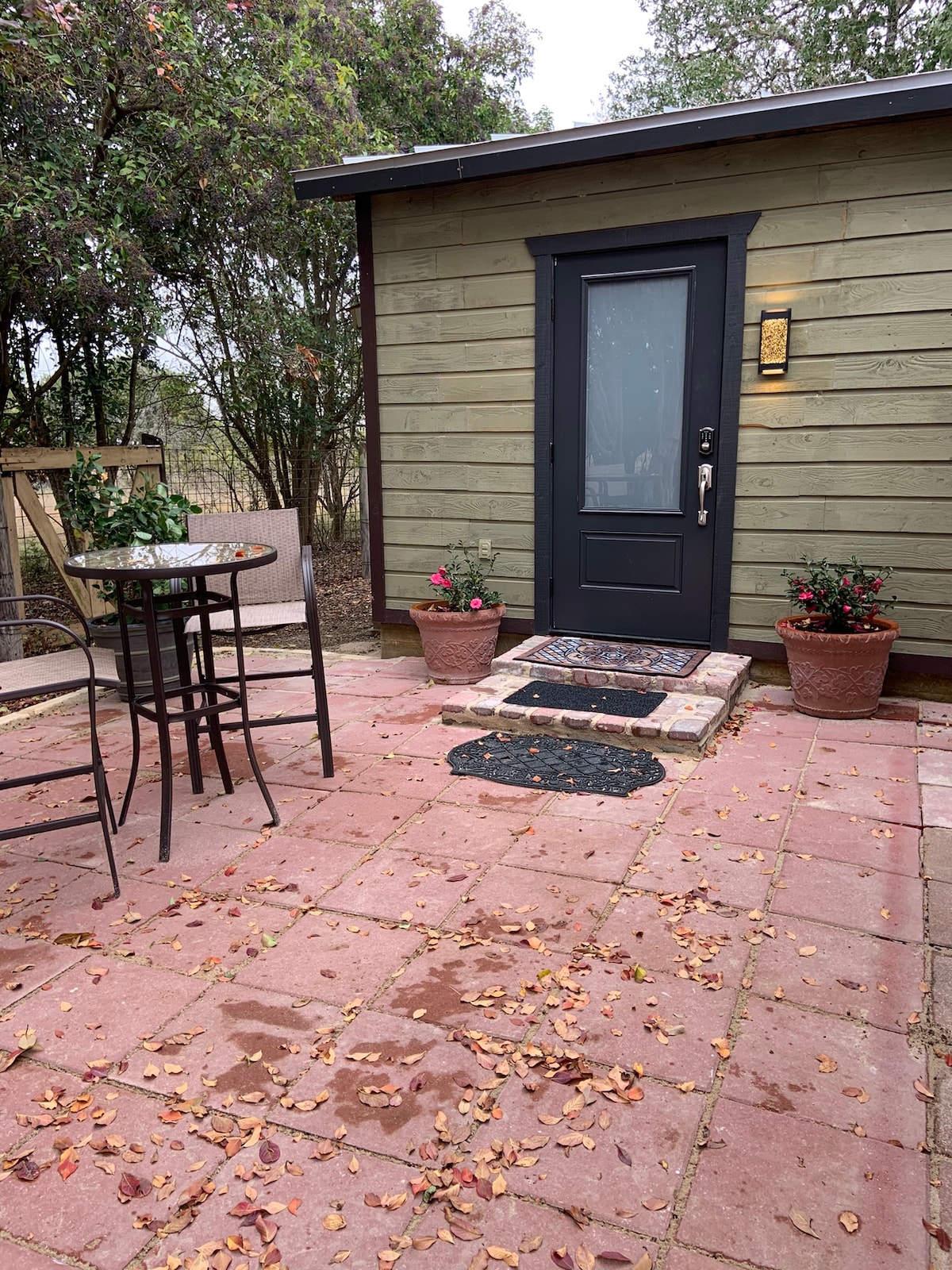 Welcome to Oak Haus in The Glades on winery corridor. Take it easy at this unique and tranquil getaway. Enjoy wine at the fire pit or coffee on the porch, where deer might scamper by. Spend your time relaxing, playing games or swimming in the heated cowboy pool (which is a 10 foot stock tank) in the common leisure corral. Visit the 12 wineries, brewery or two distilleries that are within one and a half miles of Oak Haus. Fredericksburg is just a short drive away.