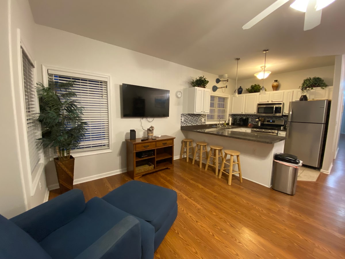 We are a 5 star rated Airbnb. We worked hard to earn that and harder to keep it. Our goal is to provide the cleanest and most beautiful experience in the Wildwood's. Beautiful sunsets every evening. Amenities include full kitchen, sub-zero refrigerator, dishwasher and all utensils. Washer and dryer included. Master bedroom with King bed and private tile shower. Living room with dining area. Both tv’s are smart, Hulu, Netflix etc.