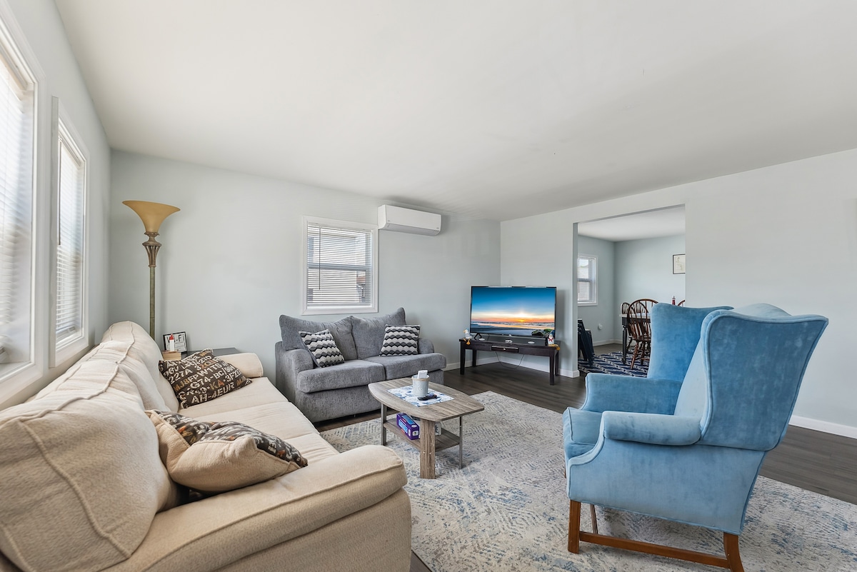 Just a 2-block stroll to Wildwood's free beaches and boardwalk! This bright, remodeled 3-bedroom, 1-bath retreat comfortably sleeps your group. Enjoy two private decks, a modern kitchen with granite countertops, and free WiFi. Perfect for families and groups, this 1,200 sq. ft. space offers a dedicated parking spot and keyless entry for a seamless beach vacation. Walk to everything! *Across the street from the Hen Houses (Mudhen Hospitality) **We do not rent to guests under 25