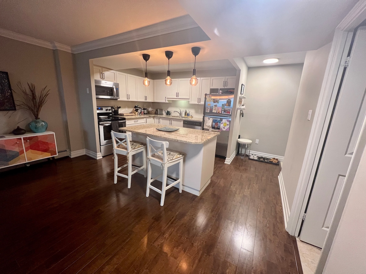 Welcome to your private 2-bed condo in the heart of Kitchener! This brand-new unit offers a separate entrance, fully equipped kitchen, spacious bedrooms, and a cozy dining area. Steps to Victoria Park, downtown, ION transit, and the tech hub. Enjoy the charm of a quiet, walkable neighborhood while being close to everything. Perfect for families, couples, or professionals. Relax, cook at home, and explore the city with ease.