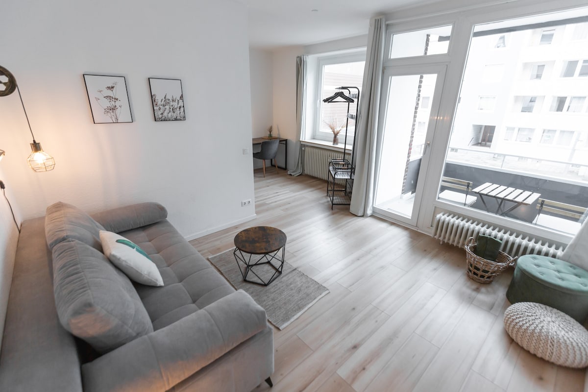Premium Apartment von Bheaven Premium Homes mit moderner Einrichtung und zentraler Lage. Fühl dich wie Zuhause in dieser frisch renovierten, gemütlichen Altbauwohnung mit skandinavischem Flair über den Dächern der Stadt. Genieße die hochwertige Ausstattung, erlebe Kultur im angrenzenden Szeneviertel und erreiche die Sehenswürdigkeiten der Stadt und das Wasser bequem zu Fuß.