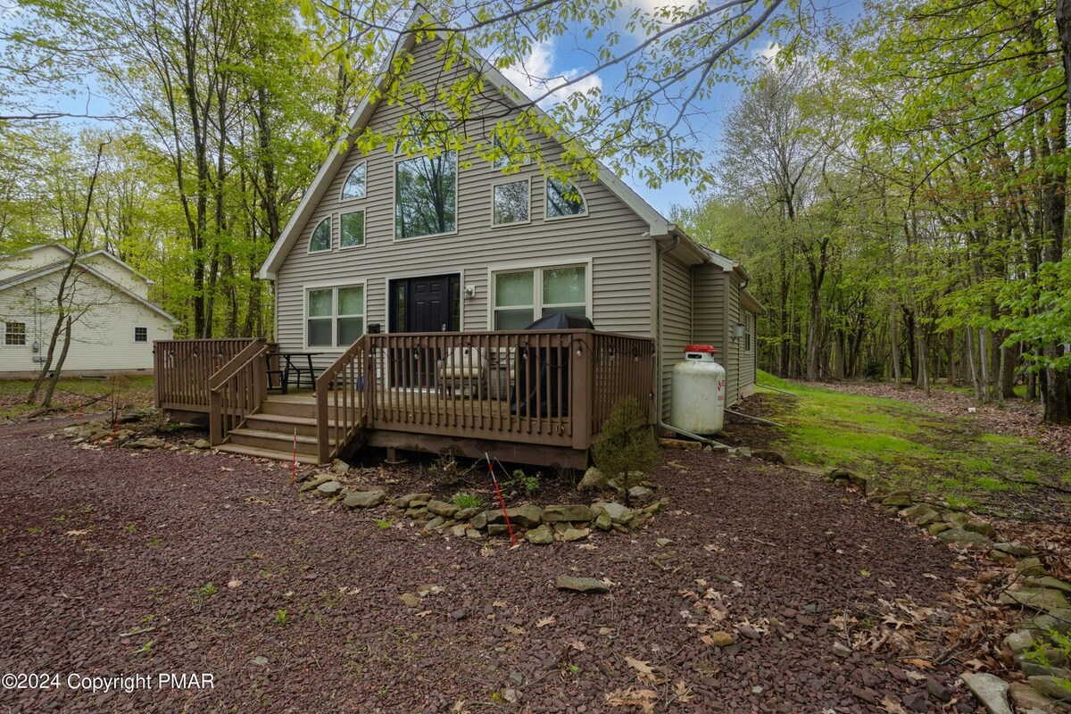Our Lake House is located in the picturesque Pocono Mountains. Enjoy BBQing on the deck overlooking Lake Carobeth, lounging on a hammock or taking kayaks or a canoe out from private dock. Enjoy a hot tub (seasonal) or keep warm by 2 fireplaces while playing pool. You can go skiing at Camelback! The community has tons of amenities for kids and adults. Our home is near both Kalahari & Great Wolf Lodge water parks and Mount Airy Casino. We hope you love our home as much as we do.